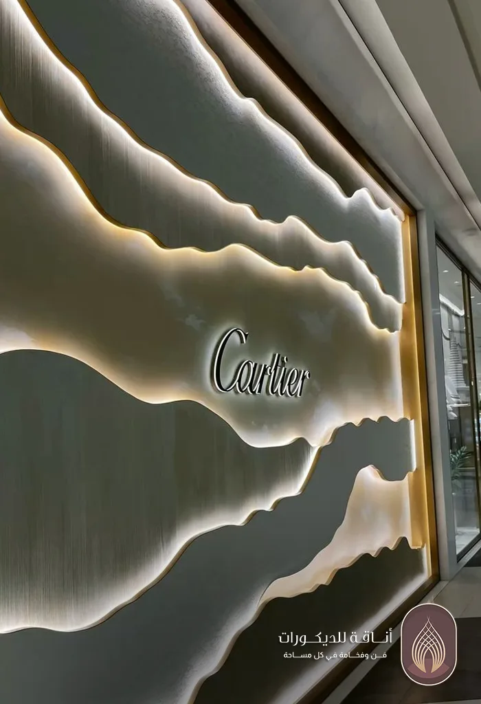- أولاً (التأسيس): تتم معاينة الجدار كما نقوم برفع المقاسات بدقة ليزرية، ثم معالجة السطح ليكون مستوياً تماماً. يتم بعد ذلك تركيب هيكل دعم (شاسيه) معدني أو خشبي مخفي لتثبيت الألواح عليه بمتانة، وتمرير التمديدات الكهربائية للإضاءة الخلفية (الـ LED).